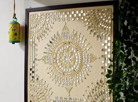 This stunning handmade Lippan wall decor showcases vibrant patterns and intricate mirror work, reflecting the rich heritage of traditional Indian art. Each piece is crafted with care, using natural materials and colorful embellishments, making it a unique addition to any home. Ideal for enhancing your living space, this decorative artwork brings warmth, character, and a touch of spirituality to your walls. Perfect for any room, it embodies both craftsmanship and cultural significance.