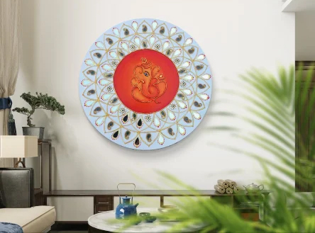Read MoreThis exquisite handmade Lippan wall decor features an intricate 18cm circular design of Lord Ganesh. Crafted with traditional materials, it showcases vibrant colors and detailed mirror work, symbolizing prosperity and good fortune. Perfect for adding a spiritual touch to any space, this unique piece blends artistry with cultural significance, making it a stunning focal point for your home.